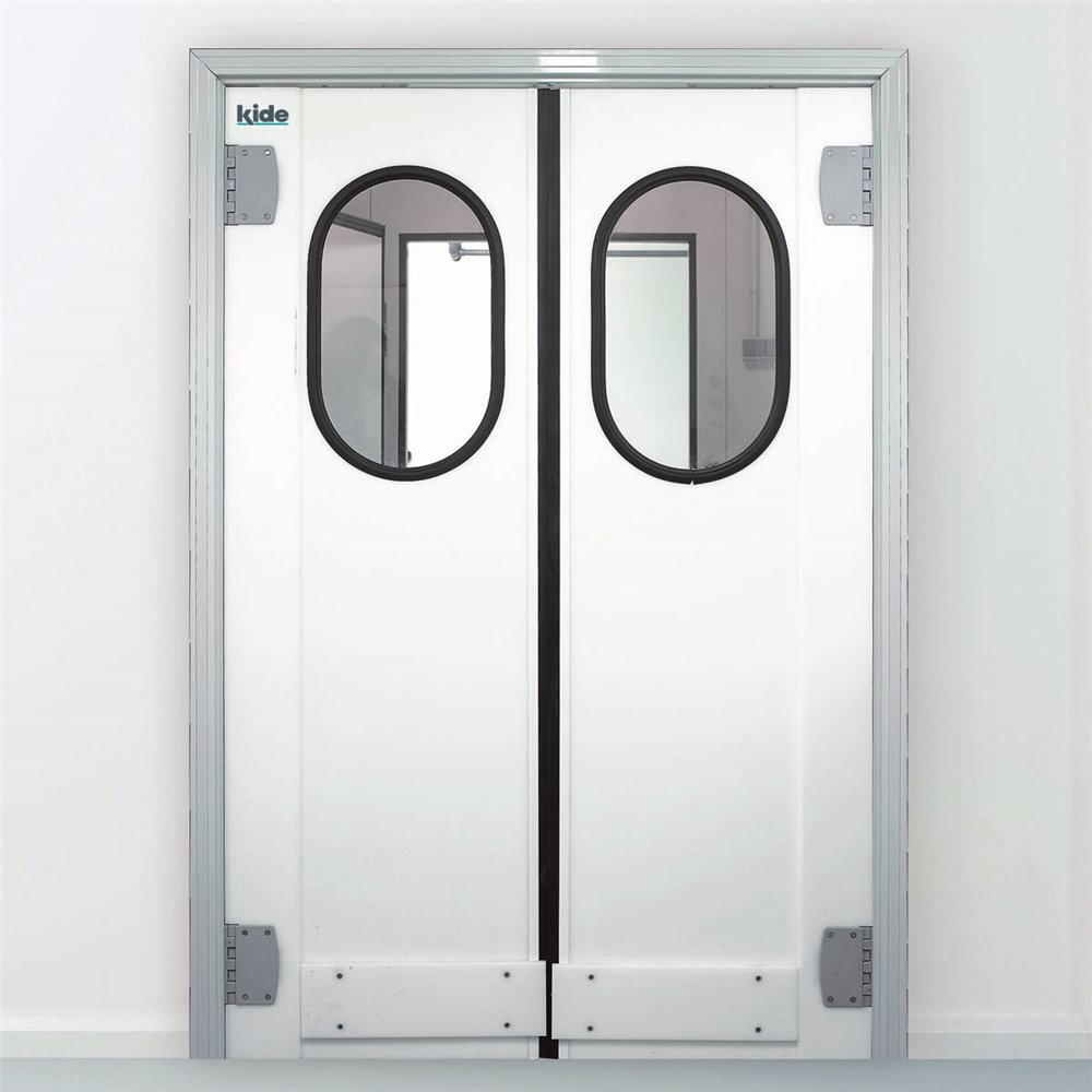 Las puertas de servicio para pasillo, salas de trabajo, oficinas, aseos, etc., están fabricadas con un espesor de 40 mm. Equipadas con manivela y bisagras de acero inoxidable, pueden servirse con una o dos hojas. Los acabados de la hoja exterior e interior pueden ser de acero lacado, acero inoxidable, PVC o poliéster. Cerco de la hoja en aluminio anodizado plata pulida. Marco de aluminio anodizado acabado plata pulido, preparado para abrazar a cualquier espesor de panel, o bien su instalación en obra civil. Contamos con una gran variedad de accesorios para cubrir todas las especificaciones de cada instalación. Desde mirillas de metacrilato o cristal, cierrapuertas superpuestos manetas con o sin llave, tiradores de apertura con barrilete, cerraduras eléctricas, antipánicos.